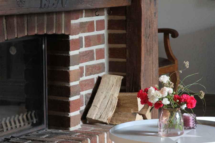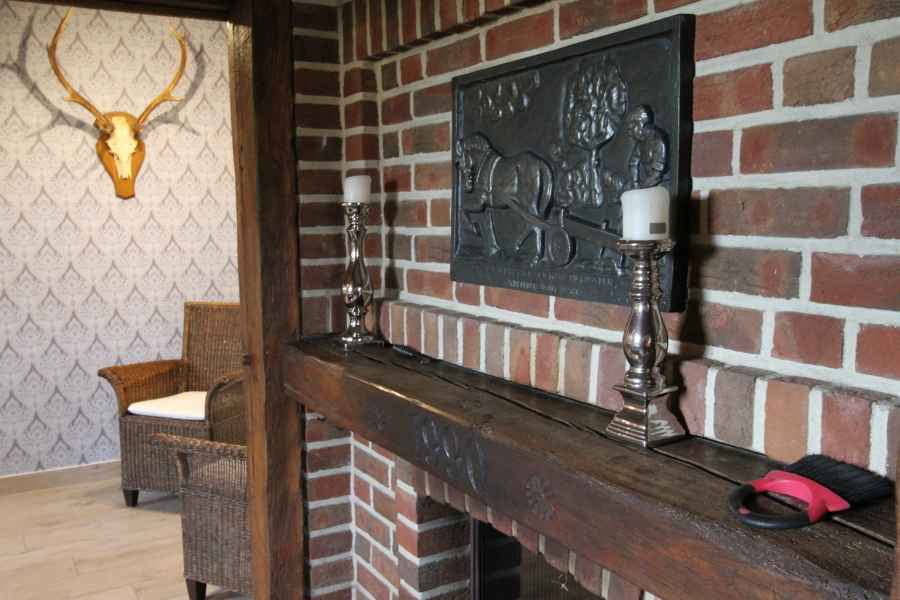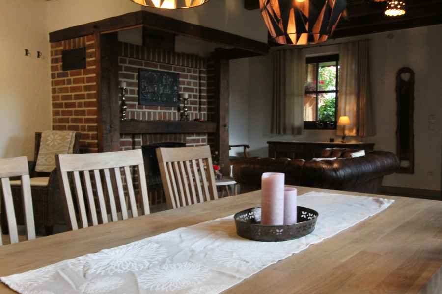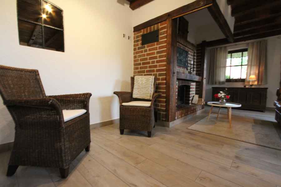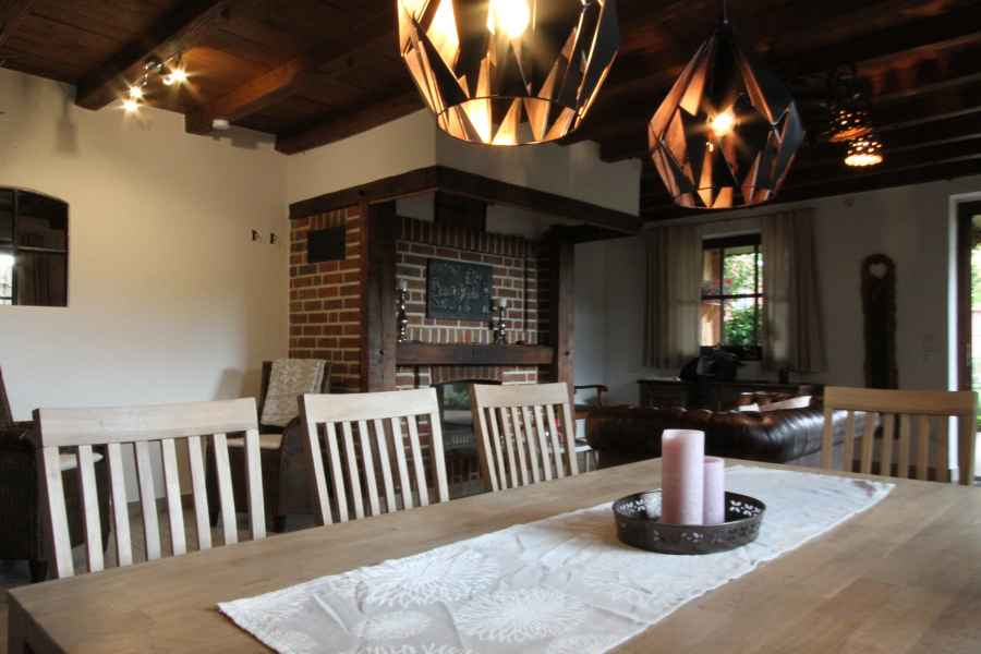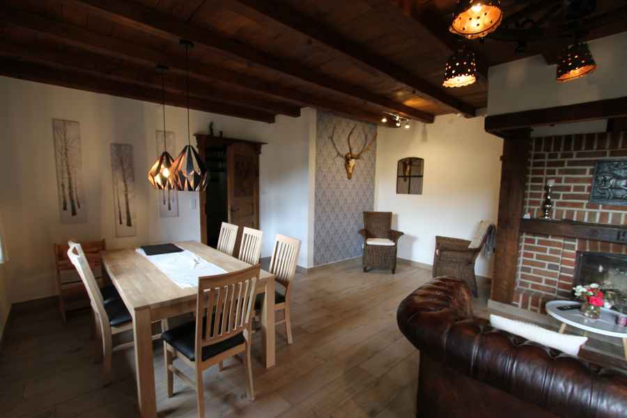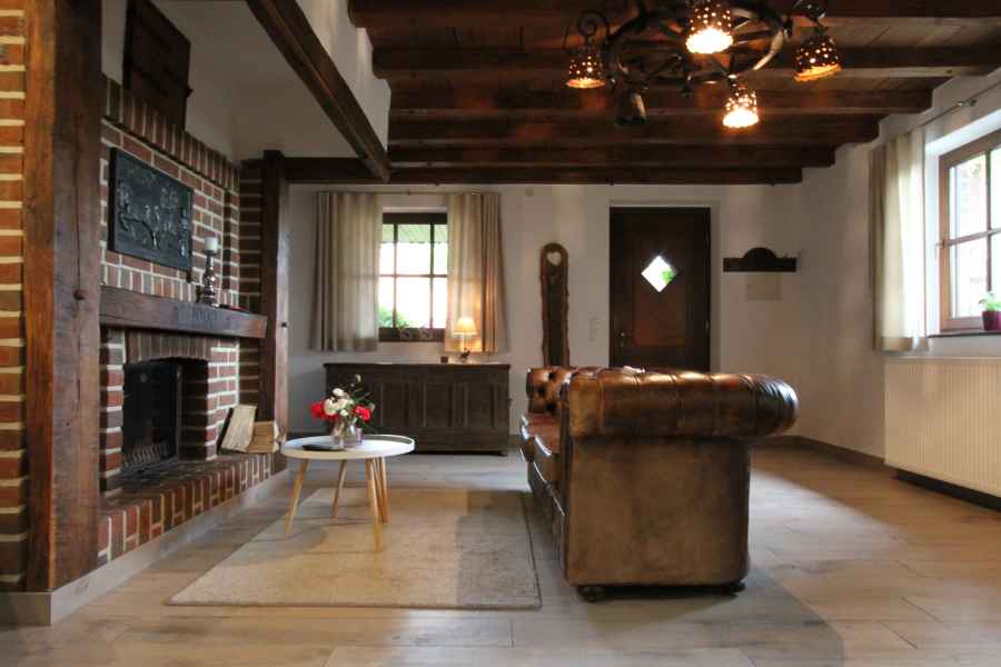 - großer Wohnraum, rustikal und gemütlich eingerichtet, mit offenem Kamin und TV